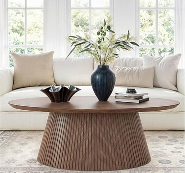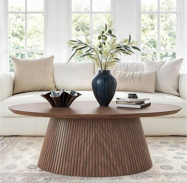 Elevate your living space with our Modern Walnut Fluted Coffee Table, a true centerpiece of contemporary elegance. Crafted from rich walnut wood with a sculptural fluted base, this round table effortlessly blends mid-century charm with modern sophistication. The wide tabletop offers generous space for decor, books, or entertaining essentials, while the detailed craftsmanship adds depth and texture to any room.