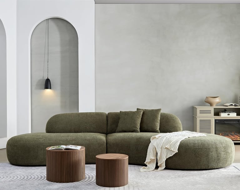 Bring effortless style and comfort to your home with this plush, moss green curved sofa. Designed with smooth and minimalist silhouette, it's perfect for modern, Japandi, or Scandinavian-inspired interiors. Upholstered in soft, durable fabric and crafted for cozy lounging, this piece adds natural, calming elegance to any space